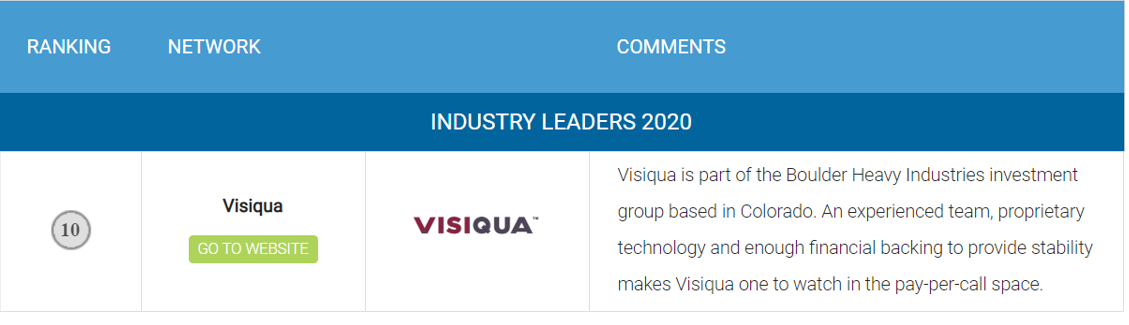 Visiqua Ranks on mThink Top 10 Pay-Per-Call Network